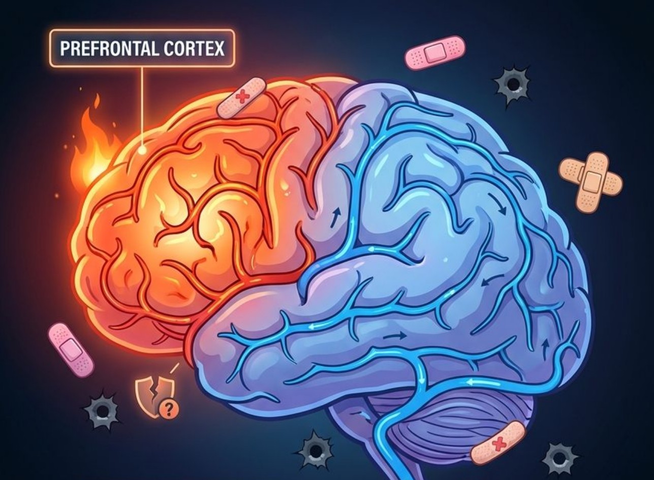 - Emotional hijacking: Hyperreactive limbic circuits (amygdala, insula) combined with underactive or under-perfused prefrontal control systems.